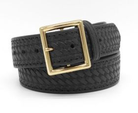 Belt: Black basket-weave duty belt. Sized for pants order.